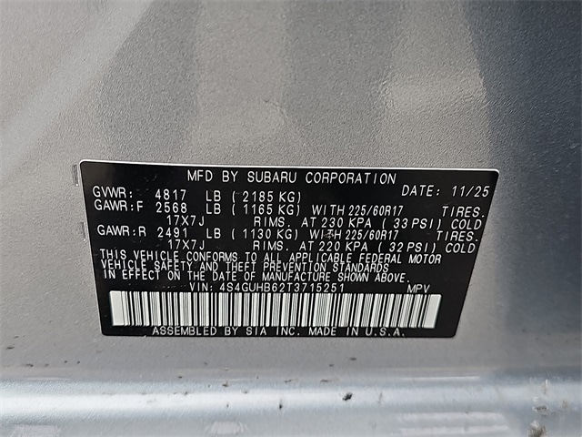 Maximum utility meets passenger comfort in the midsize segment! All of the premium features expected of a Subaru are offered, including: a tachometer, a trip computer, and air conditioning. Smooth gearshifts are achieved thanks to the 2.5 liter 4 cylinder engine, and for added security, dynamic Stability Control supplements the drivetrain.